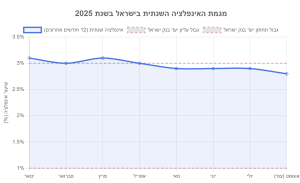 לקראת החלטת הריבית הבאה של בנק ישראל ב-29 בספטמבר, נתוני האינפלציה של אוגוסט 0.7% צפויה להוריד את קצב האינפלציה השנתי אל תוך יעד היציבות של הבנק (1%-3%). התמתנות האינפלציה, יחד עם התחזקות השקל, מהווים טיעונים חזקים בעד הורדת ריבית. מנגד, שוק העבודה ההדוק ואי-הוודאות הגיאופוליטית תומכים בהשארת הריבית ברמתה הנוכחית (4.5%) כדי להבטיח שהאינפלציה לא תרים ראשה מחדש. הוועדה המוניטרית ניצבת בפני החלטה מורכבת, והשוק ממתין בציפייה דרוכה.